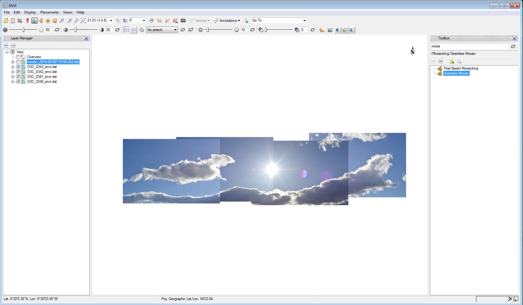 说到 ENVI + IDL,我喜欢发挥创意,看看利用我手头上所有这些强大的工具,我还能实现些什么。为了让您了解这篇博客的背景,几个月前我拿到了我的第一台单反相机。当我想拍摄更大场景的照片时,我意识到我没有生成广阔景观的镶嵌图或全景图所需的工具。