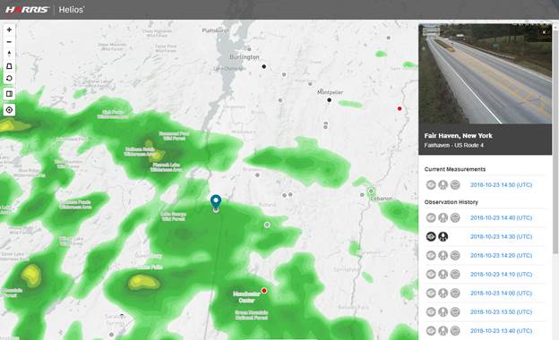 Fig 1. In this graphic, Helios analytics camera shows roads are in fact dry while radar shows rain.