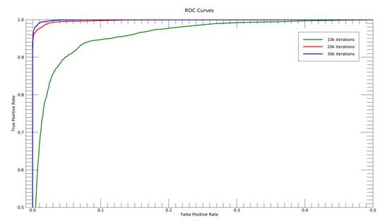 Figure 4: ROC Curves with 10k, 20k, and 30k iterations