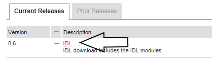 在“当前发布版本”选项卡中选择“IDL”链接。