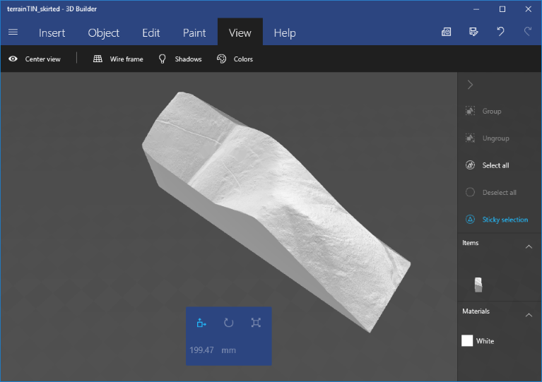 In this example, we will create a terrain surface model in the form of a Triangulated Irregular Network, or TIN. The TIN will provide the vertices and connectivity we need for printing the top of our physical object.