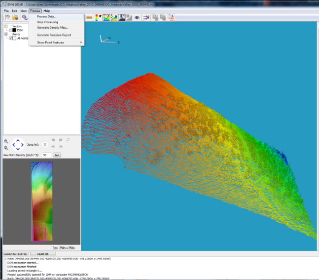 In order to create the initial surface model, we will use the Process Data option in ENVI LiDAR.