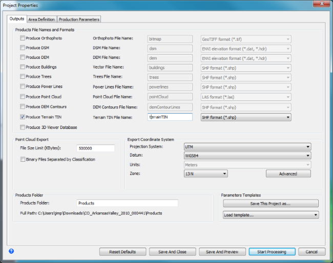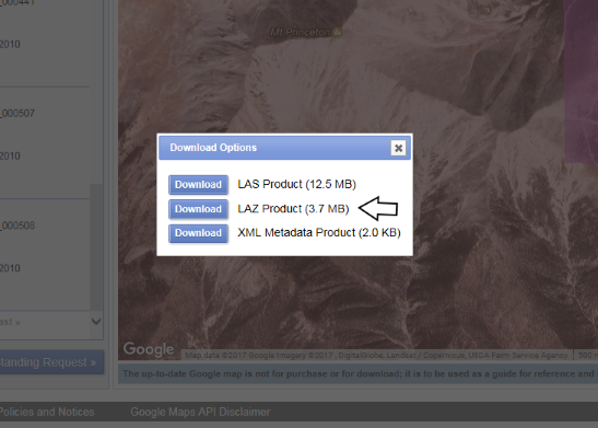 ENVI LiDAR can read compressed data as well as uncompressed data file formats, so I've selected the "LAZ Product" (compressed LiDAR) option to speed the transfer.