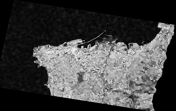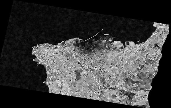 The above image shows a coherence map created from the Sentinel-1 both before the explosion in Beirut (on the left) and soon after (on the right). Dark areas show stark dissimilarity between the collects. The Sentinel-1 data were collected at 3:45 am, showing the value of collecting in the dark when the event happend late in the day. The Sentinel-1 data was processed using ENVI SARscape Analytics by sarmap sa.