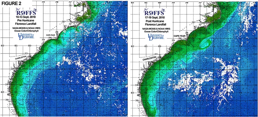 Roffer's Ocean Fishing Forecasting Service (ROFFS™) uses IDL® and ENVI® software and routines to take raw NOAA, NASA and ESA (European Space Agency) satellite data and process them to a user-friendly format to analyze for private industry and scientific research needs. More specifically we developed IDL and ENVI code and utilized their routines to download real-time satellite data and then georeference, re-project, and calibrate the images and output them to a usable format. The two case studies outlined below use IDL and ENVI to help fisherman find the most productive areas to fish, and tracking contaminated runoff from Hurricane Florence.