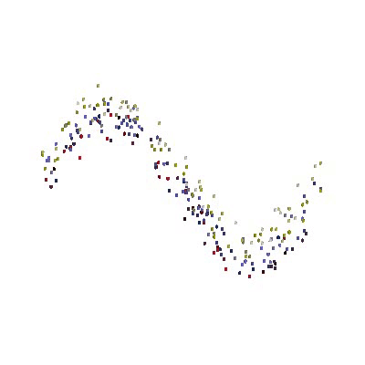 You can see a chief problem we encounter when displaying sparse data like this. Yes, we can discern the individual points but the negative space between points makes it difficult for us to see the patterns in the data, even with the advantage of animation.