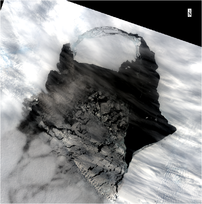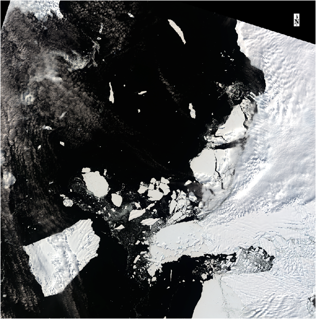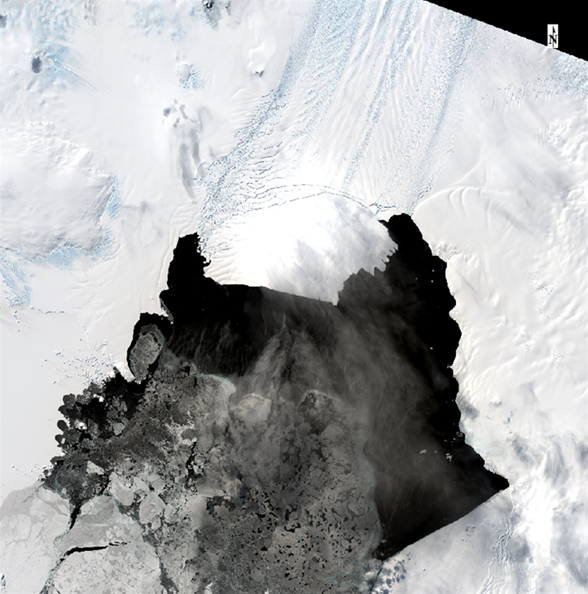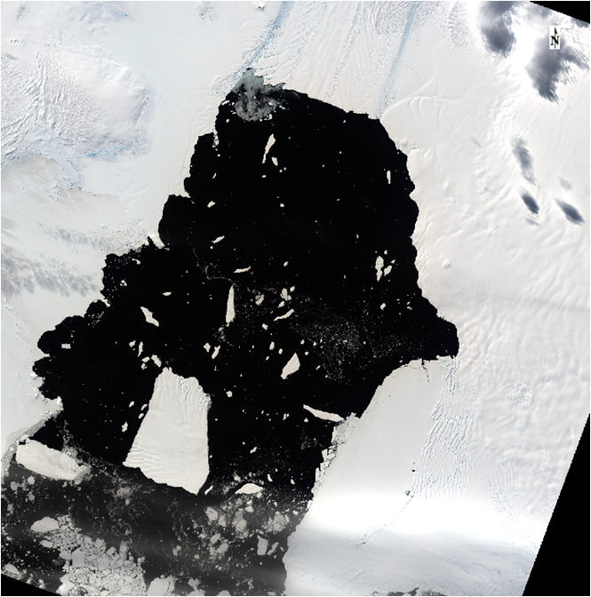 那么,我们为什么讨论这个冰川呢?在2013年11月9日至11月11日之间的某个时刻,一座冰山从该冰川崩解分离。冰山不断从冰川上崩解,所以没什么大不了的,对吧?然而,这座特定的冰山恰好大约是曼哈顿面积的六倍。这座新冰山估计长约21英里(35公里),宽约12英里(20公里),大致相当于新加坡的面积,最高海拔约为1600英尺(500米)。这座巨大冰山的移动路径将被密切跟踪,看看它最终是进入"沿岸逆流"还是"绕极流",将会很有趣。美国宇航局荣誉退休科学家罗伯特·宾德沙德勒推测:"它去向何处取决于其龙骨所延伸到的深层洋流。" http://earthobservatory.nasa.gov/IOTD/view.php?id=82392。