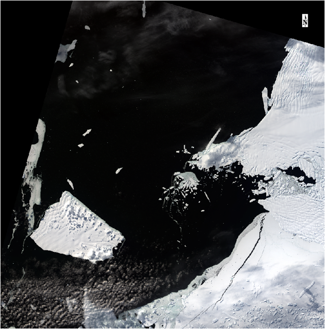 导致如此巨大冰山崩解的过程受到全球研究机构的关注,但在松岛冰川项目上的主要合作方是美国宇航局和英国南极调查局。更好地理解这座冰山究竟为何以及如何从冰架上分离,将有助于我们更全面地了解未来几十年将影响全球海平面的作用力。如果我们要减轻全球气候变化的影响及其引发的众多问题,合作和辛勤工作将是必不可少的。下面的图像由Landsat 8卫星拍摄,由美国地质调查局(USGS)地球资源观测与科学中心(EROS)提供。