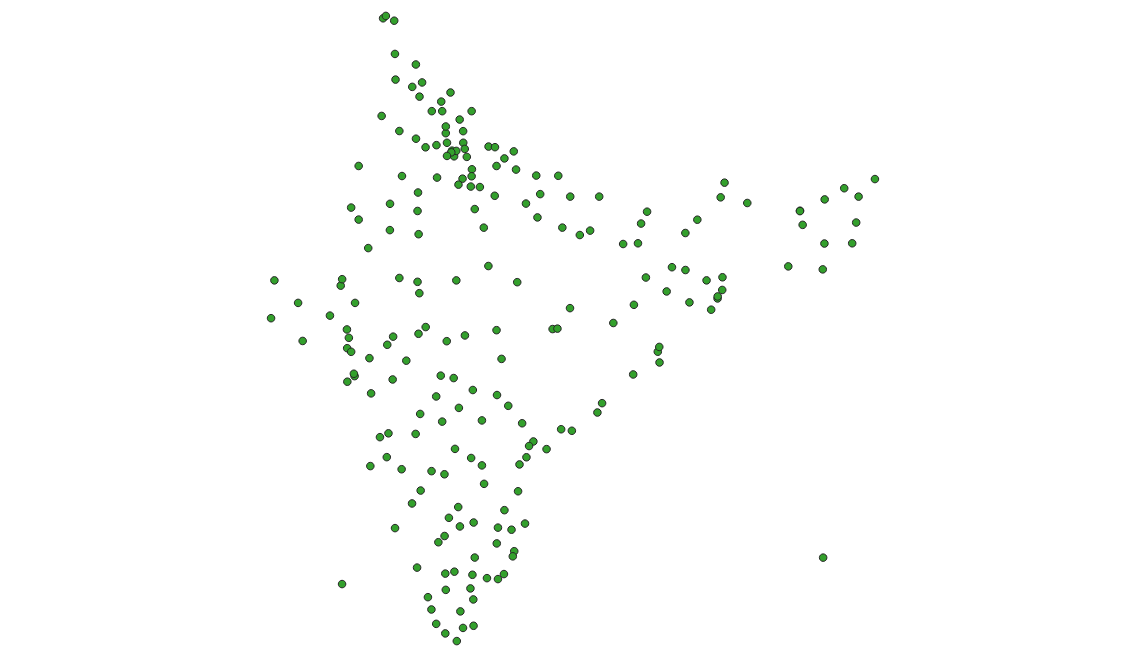 OGR 工具允许对数据源执行 SQL 查询。它支持 OGR SQL 语法 中描述的 SQL 功能子集。选择要素子集的一种简单方法是使用 -where 选项。这允许你指定属性查询来过滤结果。在这里,我们修改命令以仅提取 country 列值为 India 的城市。