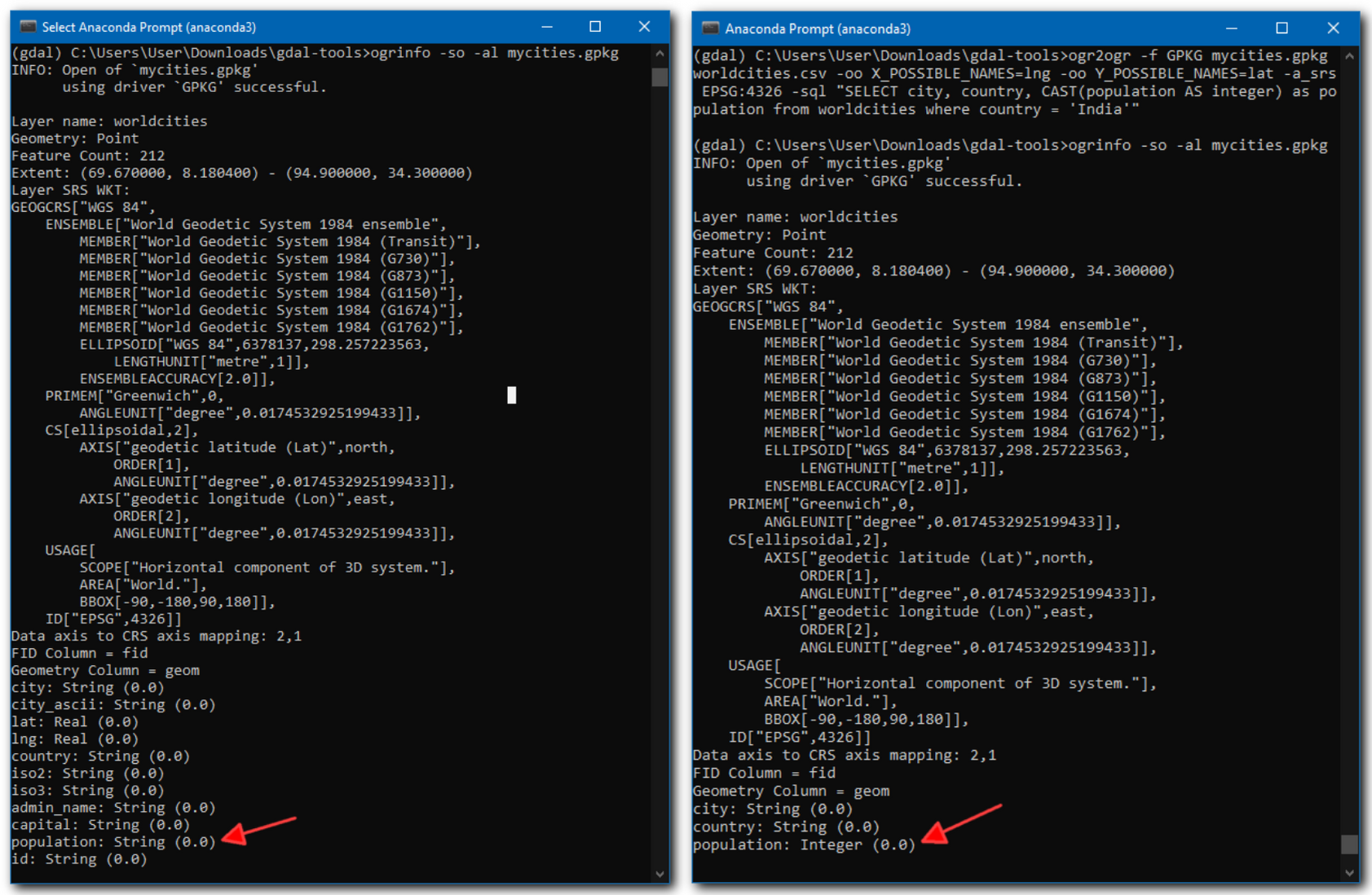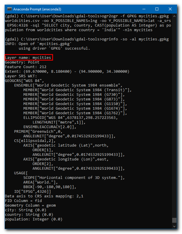 ogr2ogr -f GPKG mycities.gpkg worldcities.csv ^